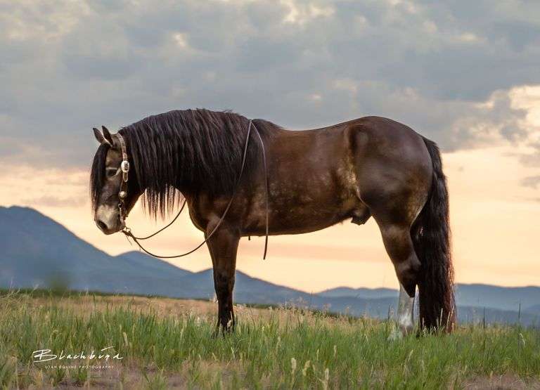 A once in a lifetime horse! He’s an absolute gentleman and handsome made draft cross gelding as one could ever hope to find. This big, 16H, good looking buckskin fella really is one of those horses we’ve all dreamed about owning. As nice as he is on the outside to look at, he’s even better on the inside. He is a true gentle and honest horse with the sweetest personality. Smokey is a ladies man. He’s very easy on the eyes loping circles in the arena under a western saddle or fancied up in English attire. He is also one that is willing to put the work clothes on, head out and do a job on the ranch, whether it's in the branding pen or good hard day’s work gathering cattle. He’s the best to ride, smooth, great handle and easy to ride. Anyone that can sit in a saddle will get along with true gentleman. He’s one that has the best ground manners and will stand as long as you need. He’s incredibly patient and will do whatever you ask. If it’s just sitting on his back doing your morning Yoga session he’ll stand there for you. If you want to ride him bridleless and bareback out in the pasture he’s cool with that. He’s not one that will run off in anyway. He could care less about tarps, balls, dogs or whatever else there is that might look strange to a horse. Saddle him up English and go “Hack”, maybe do some flat work with him or use him as your next big Fox Hunting Companion. Go to the ranch, cowboy on him and you will be the talk of the branding pen or on the ranch. He’s an absolute blast to ride and work on with cows. He’s done parades, carried flags and catches everyone’s eye. Everyone notices this horse no matter where you are. He’s that kind that will stands out in a crowd. Smokey is a true gentle, friendly, loving type gelding, likes attention and wants to please you anyway he can. He’s one of the best and one we are proud to offer and to have spent the time we have with him. For more information, please call (801)-361-6772 or email rmohorses@gmail.com.
